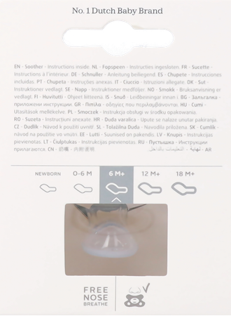De Difrax fopspenen hebben een vlindervormig schildje. Hierdoor blijft het neusje vrij en sluit de speen mooi op het gezichtje aan. De gaatjes in het schildje zorgen voor extra luchttoevoer, dit voorkomt huidirritatie. De grootte van het fopspeenschildje is speciaal ontwikkeld voor baby's van 6 tot ongeveer 12 maanden en is daarom groter dan het schildje van de Newborn en 0-6 maanden fopspeen.