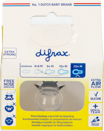 De Difrax Fopspeen Natural 20+ Maanden is speciaal ontwikkeld voor kindjes vanaf 20 maanden. Het siliconen zuiggedeelte is steviger en meer gevuld dan bij de 12+ maanden fopspeen.
