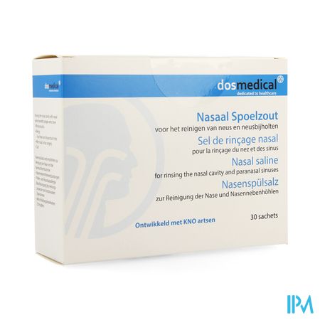 DOS Medical Nasaal spoelzout is samengesteld in overleg met KNO artsen en is bedoeld voor het spoelen of vernevelen van neus en neusbijholten. Mensen die hun neus spoelen met een zoutwateroplossing hebben vaak te maken met een gevoelig, geïrriteerd, beschadigd of ontstoken neusslijmvlies. Spelen met alleen natriumchloride (zeker wanneer er jodium aan is toegevoegd) kan het neusslijmvlies verder irriteren. Om dit effect te neutraliseren wordt door KNO artsen de voorkeur gegeven om de neus te spoelen met een combinatie van natriumchloride (NaCl) en natriumbicarbonaat (NaHCO3). Hierdoor wordt nasaal spoelzout met natriumbicarbonaat als zachter, comfortabeler voor de neus ervaren dan wanneer allen NaCl wordt gebruikt. Daarnaast leidt de reactie van natriumbicarbonaat in contact met water tot een extra reinigend, anti-septisch effect. Het zorgt voor een betere oplossing van taai, vastzittend slijm en neutraliseert ontstekende stofwisselingsproducten. Nasaal spoelzout met xylitol is ontwikkeld met keel, neus en oorartsen speciaal voor mensen met "chronische" neusbijholteontsteking. Voor een extra fris gevoel is een vleugje mint toegevoegd. De neus spoelen of vernevelen met een nasaal spoelzout met xylitol zorgt voor optimale reiniging en het afbreken van de biofilm van bacteriën. De biofilm is een 'slijmlaag' welke door bacteriën wordt aangemaakt en waarmee zij zich beter aan het weefsel kunnen vasthechten. Daarnaast biedt de biofilm bacteriën bescherming tegen afweerreacties van de mens en tegen antibiotica. Zo creëren bacteriën betere overlevingskansen voor zichzelf en hebben mensen langer last van een infectie. Xylitol wordt overigens ook, in kleine hoeveelheden, door de mens zelf aangemaakt.