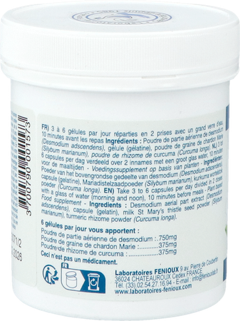 D.P.R® combineert Desmodium , mariadistel en Kurkuma. Desmodium is een leverregenerator: het bevordert de goede werking van de lever en stelt het in staat om zijn werk gemakkelijker uit te voeren.