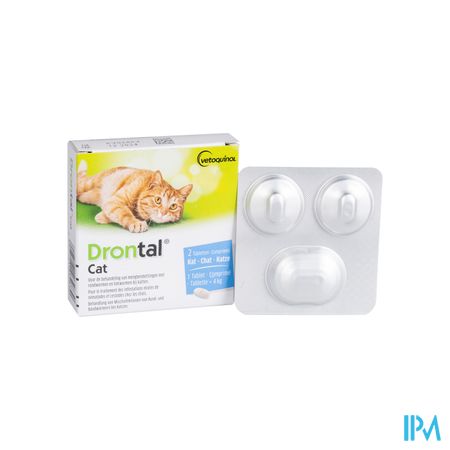 Drontal cat is een middel dat Pyrantelembonaat 230,0 mg + Praziquantel 20,0 mg per tablet bevat en een zeer breed spectrum aan wormen doodt, zowel rondwormen (spoelwormen én haakwormen) als lintwormen – werkingsspectrum: Spoelwormen (Toxocara cati (syn. mystax), Toxascaris leonina), haakwormen (Ancylostoma tubaeforme) en lintwormen (Dipylidium caninum, Hydatigera (Taenia) taeniaeformis, Echinococcus multilocularis).