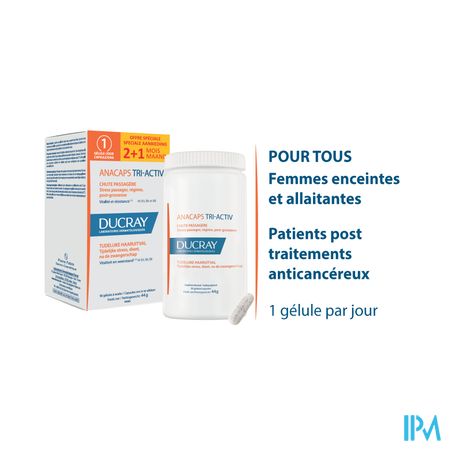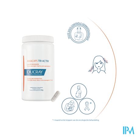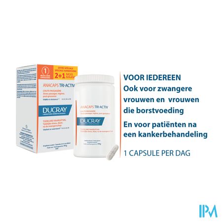 Ducray Anacaps Tri-activ Caps 90 is een voedingssupplement, verkrijgbaar in uw buurtapotheek of online apotheek. Neem niet meer dan de aanbevolen dagelijkse dosis vermeld op de verpakking. Het vervangt geen gezonde levensstijl en gevarieerde en evenwichtige voeding. Vraag raad aan uw apotheker. Het product altijd buiten het bereik van kinderen houden.