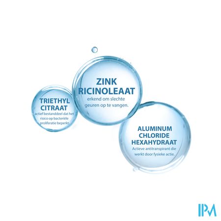 - De formule bevat een trio van elkaar aanvullende werkstoffen, waaronder ALUMINIUMZOUTEN, die vocht absorberen, geuren opvangen en de huid zuiveren.