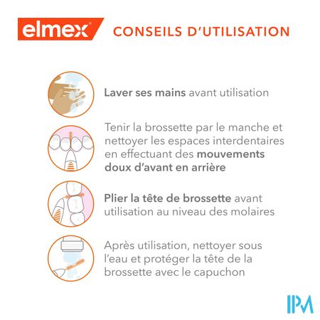 Elke verpakking bevat 8 elmex interdentale ragers in maat 0 (0,6 mm). De maten 0, 1 & 2 zijn gemaakt voor kleine interdentale ruimtes. De maten 3, 4 & 5 zijn gemaakt voor middelgrote interdentale ruimtes.