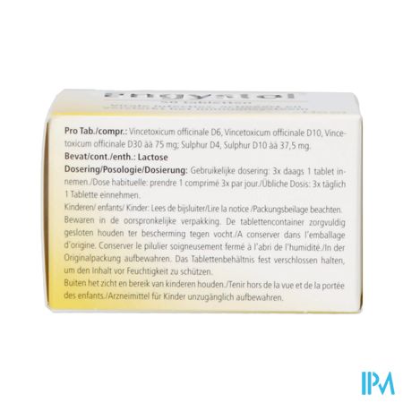 De werkzame bestanddelen in 1 tablet van 301,5 mg zijn: Vincetoxicum officinale D6, Vincetoxicum officinale D10, Vincetoxicum officinale D30 àà 75 mg; Sulphur D4, Sulphur D10 àà 37,5 mg.