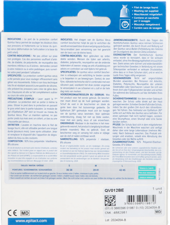 Hij is heel dun (slechts 1 mm dik), waardoor hij weinig ruimte inneemt in de schoen. Dankzij de bestendige en elastische materialen blijft de bescherming stevig op de voet zitten en wordt hij de hele dag vergeten.
