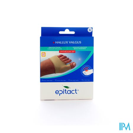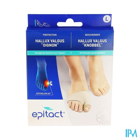 Epitact® heeft een hallux valgus bescherming ontwikkeld die bestaat uit een gelkussentje van Epithelium 26® waardoor de druk en de wrijvingen ter hoogte van de "knobbel" beperkt worden. Op deze manier wordt de pijn verlicht en de vorming van eelt vermeden.