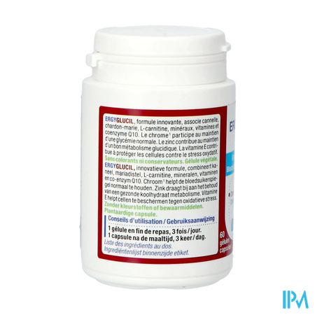 Ergyglucil Caps 60 is een voedingssupplement, verkrijgbaar in uw buurtapotheek of online apotheek. Neem niet meer dan de aanbevolen dagelijkse dosis vermeld op de verpakking. Het vervangt geen gezonde levensstijl en gevarieerde en evenwichtige voeding. Vraag raad aan uw apotheker. Het product altijd buiten het bereik van kinderen houden.