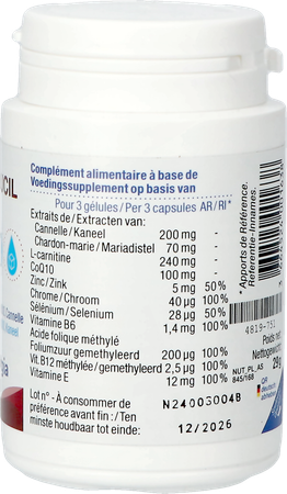 De formule bevat daarnaast ook kaneel, dat talrijke positieve eigenschappen heeft, mariadistel, L-carnitine, CoQ10, vitaminen en mineralen.