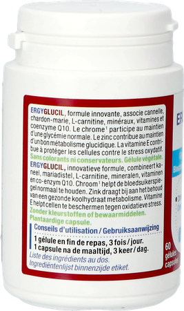 ERGYGLUCIL is een innovatieve synergievan 11 belangrijke actieve bestanddelen die een deskundige oplossing biedt voor een verstoorde suikerstofwisseling, met name dankzij chroom dat een normale bloedsuikerspiegel helpt te behouden en waarvan de werking wordt aangevuld door zink dat de suikerstofwisseling ondersteunt.