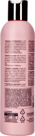 Milde reinigende shampoo met een sterk herstellende kracht. Geschikt voor beschadigd haar na teveel styling, brushing, chemische beschadiging (chloor, kleuring). Deze shampoo herstelt de haarvezel, geeft zijn natuurlijke elasticiteit en vitaliteit terug.