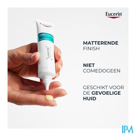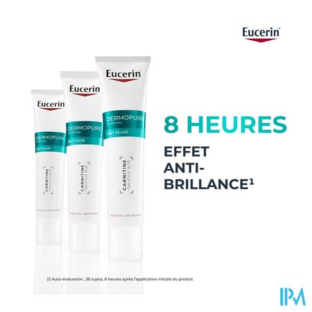 Eucerin DERMOPURE CLINICAL Mat Fluid is klinisch en dermatologisch getest. De fluid laat de huid er tot 8 uur lang* minder vet uitzien, vermindert de zichtbaarheid van poriën en onzuiverheden en richt zich op het microbioom van de huid.