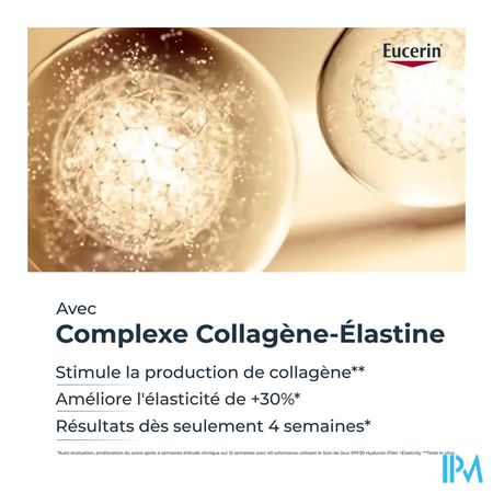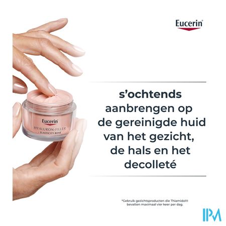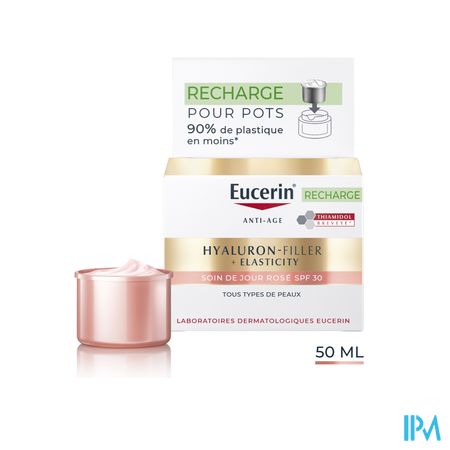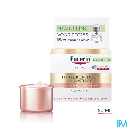 Hyaluron-Filler + Elasticity Dagcrème Rose SPF30 van Eucerin is een anti-age dagcrème die onmiddellijk een rozige gloed geeft om een doffe huid op te frissen, diepe rimpels op te vullen, de elasticiteit van de huid te verbeteren, donkere vlekken als gevolg van de leeftijd te corrigeren en de huid weer te laten stralen.