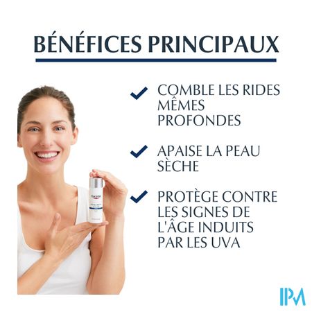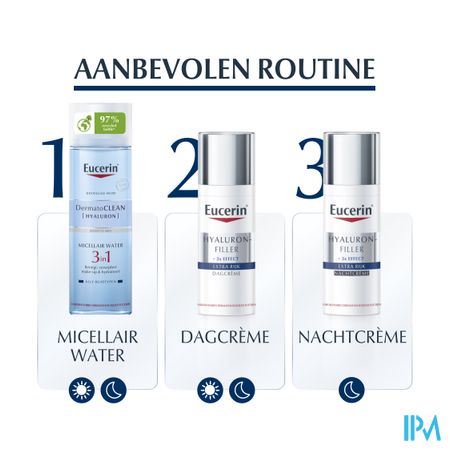 Een dunne laag Eucerin Hyaluron-Filler Extra Rijk Antirimpel Dagcrème aanbrengen op uw gezicht en in de huid masseren.