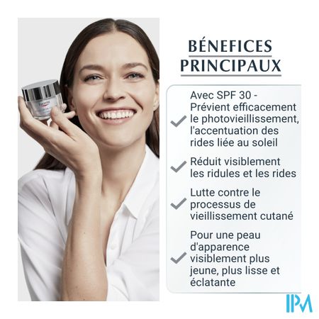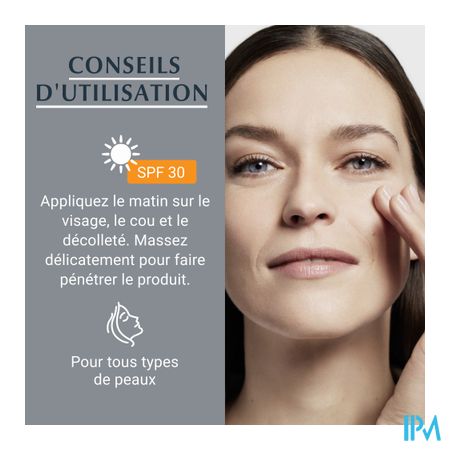La formule associe de l'acide hyaluronique de haut et de bas poids moléculaire acide hyaluronique qui agit à l'origine des rides. Le SPF 30 et la protection UVA préviennent efficacement le vieillissement prématuré et le creusement des rides existantes. rides existantes. La peau est visiblement plus lisse. Crée une excellente base de maquillage.