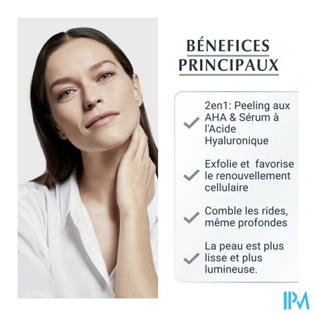Een peeling en serum voor 's nachts, met dubbele werking. Exfolieert licht en verfijnt de textuur van de huid, stimuleert de celvernieuwing en helpt zelfs de diepste rimpels van binnenuit op te vullen. Voor en gladdere, stralende huid.