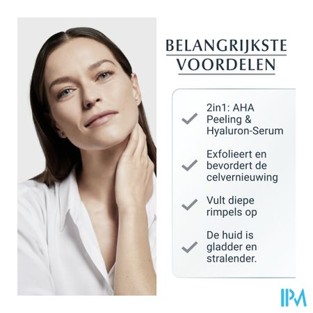 Dubbele werking: anti-ageverzorging met peeling-effect en hydraterend serum voor alle huidtypes.