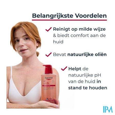 De gevoelige huid heeft een reiniging met een uitgebalanceerde pH nodig om op milde wijze te reinigen en dagelijkse invloeden van buitenaf te weerstaan. Deze Eucerin Douchegel-Olie met Dexpanthenol en natuurlijke oliën reinigt de gevoelige huid op milde wijze en effectief, zonder een vettig residu op de huid achter te laten. De milde formule, gecombineerd met het pH Balance System, helpt de huid de optimale pH te houden en ondersteunt de natuurlijke beschermende huidbarrière. Met een frisse geur! Het resultaat: je huid wordt op milde wijze gereinigd, en de pH-waarde wordt gestabiliseerd. Na elk gebruik voelt je huid gehydrateerd, glad en comfortabel aan. Eucerins Douchegel-Olie met gebalanceerde pH voor de gevoelige huid is specifiek ontwikkeld om de gevoelige huid te voeden en te beschermen, en zo te helpen het evenwicht terug te vinden. De formule zonder zeep zorgt voor een milde, maar effectieve reiniging, met een zacht schuimende textuur, optimaal voor lichaam en gezicht.