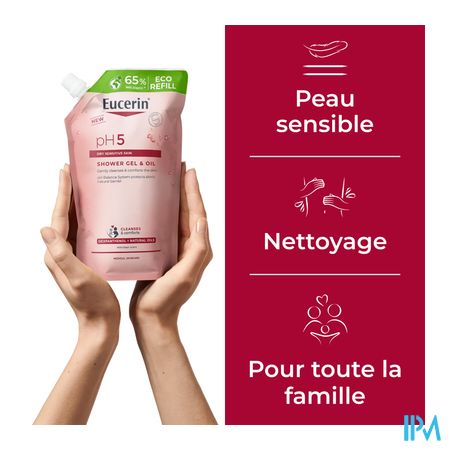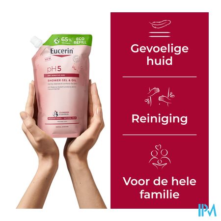 De gevoelige huid heeft een reiniging met een uitgebalanceerde pH nodig om op milde wijze te reinigen en dagelijkse invloeden van buitenaf te weerstaan. Deze Eucerin Douchegel-Olie met Dexpanthenol en natuurlijke oliën reinigt de gevoelige huid op milde wijze en effectief, zonder een vettig residu op de huid achter te laten. De milde formule, gecombineerd met het pH Balance System, helpt de huid de optimale pH te houden en ondersteunt de natuurlijke beschermende huidbarrière. Met een frisse geur! Het resultaat: je huid wordt op milde wijze gereinigd, en de pH-waarde wordt gestabiliseerd. Na elk gebruik voelt je huid gehydrateerd, glad en comfortabel aan. Eucerins Douchegel-Olie met gebalanceerde pH voor de gevoelige huid is specifiek ontwikkeld om de gevoelige huid te voeden en te beschermen, en zo te helpen het evenwicht terug te vinden. De formule zonder zeep zorgt voor een milde, maar effectieve reiniging, met een zacht schuimende textuur, optimaal voor lichaam en gezicht.