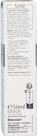 Eucerin UreaRepair Gezichtscrème 5% Urea De UreaRepair Gezichtscrème 5% Urea is een milde, snel intrekkende, hydraterende crème voor dagelijks gebruik die is ontwikkeld voor de droge tot zeer droge huid met een trekkerig gevoel. Deze crème bevat Urea en Lactaat, twee stoffen die van nature aanwezig zijn in de huid en die vocht vasthouden. Dit product hydrateert onmiddellijk de gezichtshuid, vermindert een trekkerig gevoel en laat de huid zacht en soepel aanvoelen. De Eucerin UreaRepair Gezichtscrème 5% Urea vermindert ruwheid door de huid gehydrateerd te houden. Dit product is ideaal als basis voor make-up of voor na het scheren.