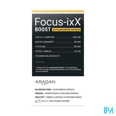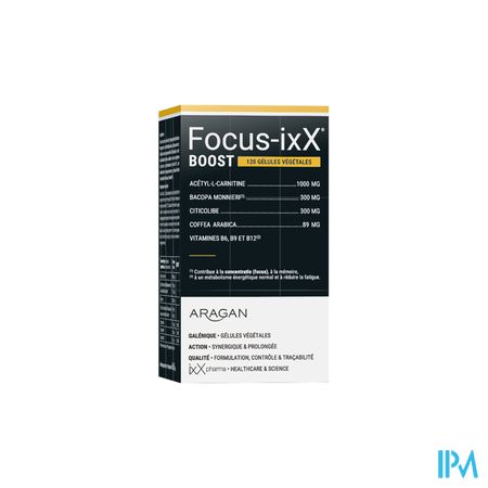 Focus-ixx Caps 120 is een voedingssupplement, verkrijgbaar in uw buurtapotheek of online apotheek. Neem niet meer dan de aanbevolen dagelijkse dosis vermeld op de verpakking. Het vervangt geen gezonde levensstijl en gevarieerde en evenwichtige voeding. Vraag raad aan uw apotheker. Het product altijd buiten het bereik van kinderen houden.