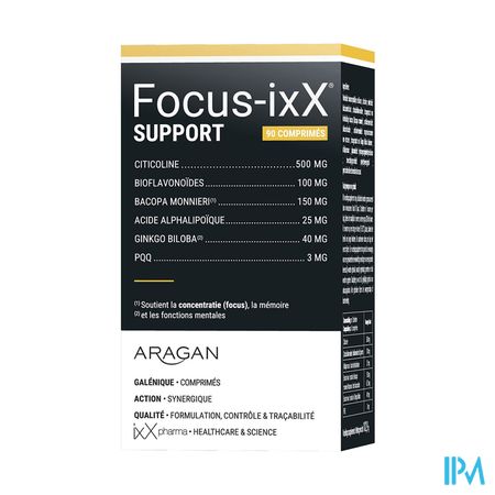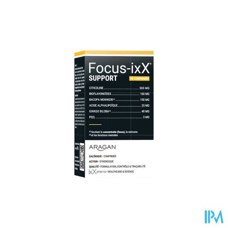 Focus-ixX®SUPPORT is een zeer vernieuwende en doeltreffende formule ter ondersteuning van concentratie en reactiesnelheid. Ideale cognitieve steun voor volwassenen onder meer tijdens en na winterongemakken en ook voor oudere personen. IxX pharma gebruikt voor het eerst het PQQ of pyrroloquinoline quinone, een aromatische heterocyclische orthoquinone.