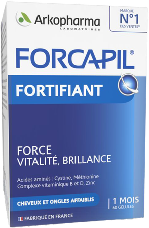 Forcapil® bevat vitamine B8 en zink die helpen om kracht en vitaliteit van haren en nagels te bewaren. Forcapil bevat eveneens zwavelhoudende aminozuren (cystine en methionine).