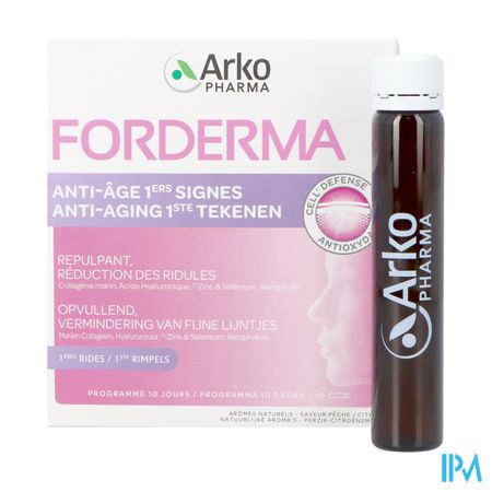 FORDERMA ANTI-AGING 1STE TEKENEN combineert marien collageen met hyaluronzuur om de veerkracht van de huid te behouden. Zink en selenium zijn CELL'DEFENSE werkzame bestanddelen om cellen helpen te beschermen tegen oxidatieve stress.