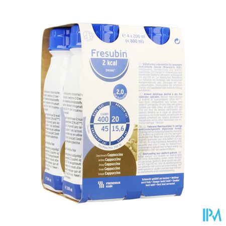 Fresubin 2 Kcal Drink 200ml Cappuccino is een voedingssupplement, verkrijgbaar in uw buurtapotheek of online apotheek. Neem niet meer dan de aanbevolen dagelijkse dosis vermeld op de verpakking. Het vervangt geen gezonde levensstijl en gevarieerde en evenwichtige voeding. Vraag raad aan uw apotheker. Het product altijd buiten het bereik van kinderen houden.