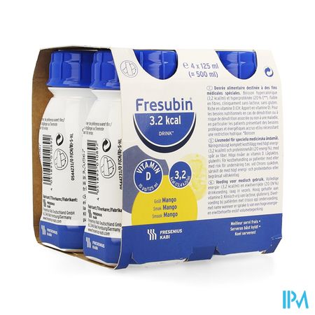 Fresubin 3,2 Kcal Drink 125ml Mangue/mango is een voedingssupplement, verkrijgbaar in uw buurtapotheek of online apotheek. Neem niet meer dan de aanbevolen dagelijkse dosis vermeld op de verpakking. Het vervangt geen gezonde levensstijl en gevarieerde en evenwichtige voeding. Vraag raad aan uw apotheker. Het product altijd buiten het bereik van kinderen houden.