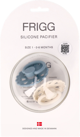 De Frigg fopspeen bestaat uit een siliconen speen met een gebogen schild.