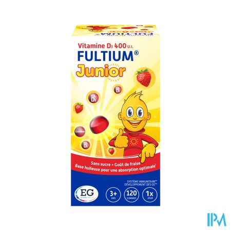 - FULTIUM Junior bevat de aanbevolen dagelijkse hoeveelheid vitamine D3 (cholecalciferol) voor kinderen vanaf 3 jaar, namelijk 10 μg of 400 I.E. Cholecalciferol is de natuurlijke vorm van vitamine D.