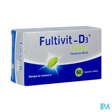 Fultivit-D3 3200 IE is een geneesmiddel dat gebruikt wordt om een tekort aan vitamine D te behandelen. Het is een kleine, groene capsule en elke capsule bevat 3200 internationale eenheden, wat overeenkomt met 80 microgram cholecalciferol.