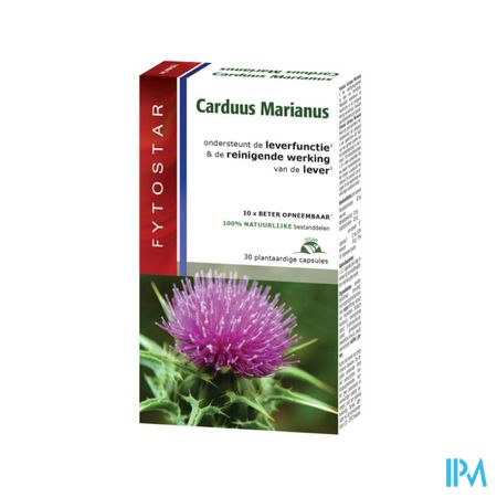 De reinigende werking van je lever natuurlijk ondersteunen? Fytostar Carduus Marianus is een 100% natuurlijk en vegan voedingssupplement ter ondersteuning van de leverfunctie en het reinigen van de lever. De plantaardige leversupplementen bevatten mariadistel*, wat de leverfunctie en de reinigende werking van de lever ondersteunt. Het geconcentreerde mariadistelextract is gekoppeld aan sojalecithine, waardoor het mariadistelextract optimaal opgenomen wordt in het lichaam. Dit complex is 10 x beter opneembaar dan een gewoon mariadistelextract. De plantaardige capsules zijn aangevuld met vitamine E en selenium, die bijdragen tot de bescherming van cellen tegen oxidatieve stress. Oxidatieve stress is een stofwisselingstoestand waarbij er vrije radicalen vrijkomen; deze stoffen kunnen ervoor zorgen dat onze lichaamsprocessen worden verstoord. Fytostar Carduus Marianus bevat 100% natuurlijke bestanddelen.