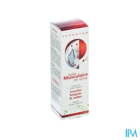Fytostar Spierolie Spray 30ml is een voedingssupplement, verkrijgbaar in uw buurtapotheek of online apotheek. Neem niet meer dan de aanbevolen dagelijkse dosis vermeld op de verpakking. Het vervangt geen gezonde levensstijl en gevarieerde en evenwichtige voeding. Vraag raad aan uw apotheker. Het product altijd buiten het bereik van kinderen houden.