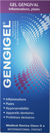 - Gengigel is een innovatief product, dat de balans van het vochtgehalte in het weefsel langdurig in stand houdt en de genezing en het herstel van het periodontaal membraan versnelt, door een tekort aan natuurlijk hyaluronzuur met hoog moleculair gewicht te voorkomen en het effect van deze laatste te versterken. Het wordt niet door het slijmvlies geabsorbeerd en ontwikkelt geen lokale of systemische farmacologische effecten. Hyaluron-zuur wordt op grote schaal gedepolymeriseerd en gereduceerd tot zijn basiscomponenten door de enzymatische werking van bacteriële plaque.