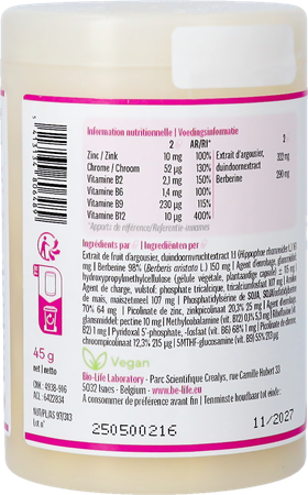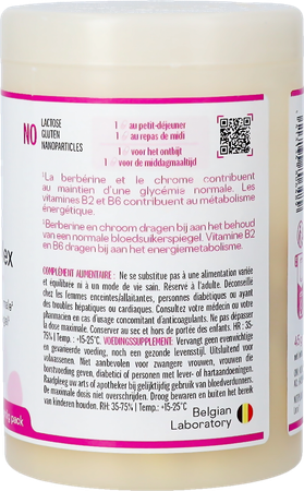 - Berberine en chroom (in picolinaatvorm), dragen bij tot het behoud van een normale bloedsuikerspiegel.