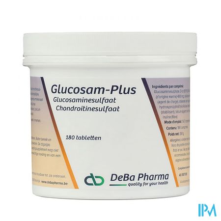 Glucosam-plus Comp 180 Deba is een voedingssupplement, verkrijgbaar in uw buurtapotheek of online apotheek. Neem niet meer dan de aanbevolen dagelijkse dosis vermeld op de verpakking. Het vervangt geen gezonde levensstijl en gevarieerde en evenwichtige voeding. Vraag raad aan uw apotheker. Het product altijd buiten het bereik van kinderen houden.
