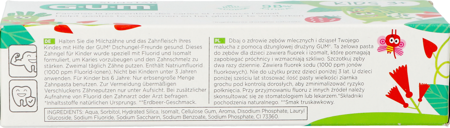 - Aangepast fluoridegehalte (1000ppm) speciaal geschikt voor kinderen jonger dan 6 jaar