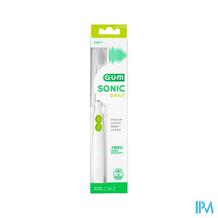 De GUM® Sonic Daily tandenborstel op batterij maakt gebruik van innovatieve technologie voor betere tandplakverwijdering dan een handtandenborstel.
