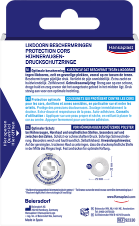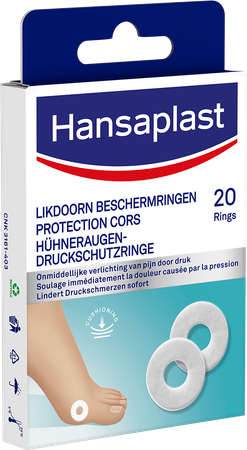 Beschermt tegen pijnlijke druk. Verlicht de pijn onmiddellijk. Extra zacht en huidvriendelijk. Zelfklevend.