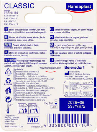 Hansaplast Hechtpleisters Classic zetten verbanden en kompressen vast.