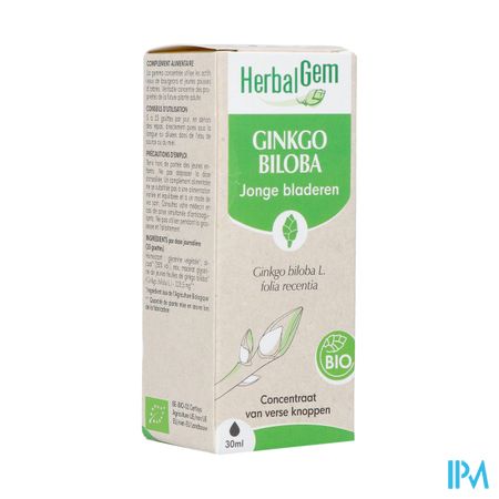 Herbalgem Ginkgo Bio 30ml is een voedingssupplement, verkrijgbaar in uw buurtapotheek of online apotheek. Neem niet meer dan de aanbevolen dagelijkse dosis vermeld op de verpakking. Het vervangt geen gezonde levensstijl en gevarieerde en evenwichtige voeding. Vraag raad aan uw apotheker. Het product altijd buiten het bereik van kinderen houden.