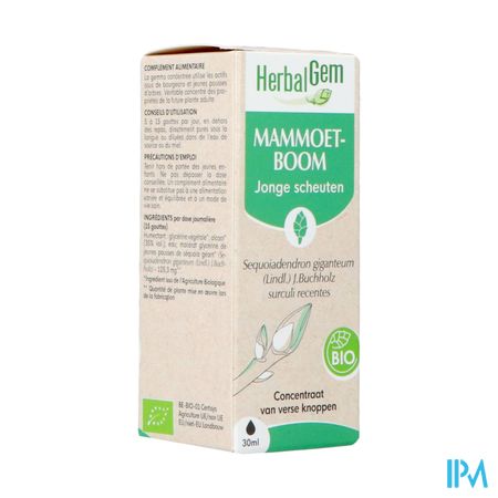 Herbalgem Mammoetboom Bio 30ml is een voedingssupplement, verkrijgbaar in uw buurtapotheek of online apotheek. Neem niet meer dan de aanbevolen dagelijkse dosis vermeld op de verpakking. Het vervangt geen gezonde levensstijl en gevarieerde en evenwichtige voeding. Vraag raad aan uw apotheker. Het product altijd buiten het bereik van kinderen houden.
