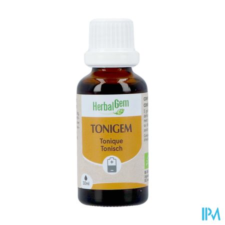 Herbalgem Tonigem Bio 30ml is een voedingssupplement, verkrijgbaar in uw buurtapotheek of online apotheek. Neem niet meer dan de aanbevolen dagelijkse dosis vermeld op de verpakking. Het vervangt geen gezonde levensstijl en gevarieerde en evenwichtige voeding. Vraag raad aan uw apotheker. Het product altijd buiten het bereik van kinderen houden.