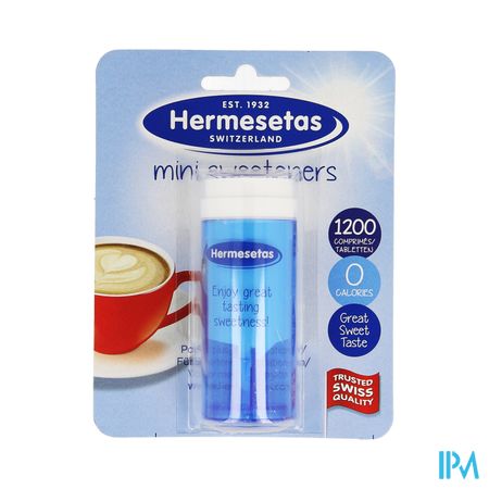 Hermesetas Tabl 1200 is een voedingssupplement, verkrijgbaar in uw buurtapotheek of online apotheek. Neem niet meer dan de aanbevolen dagelijkse dosis vermeld op de verpakking. Het vervangt geen gezonde levensstijl en gevarieerde en evenwichtige voeding. Vraag raad aan uw apotheker. Het product altijd buiten het bereik van kinderen houden.