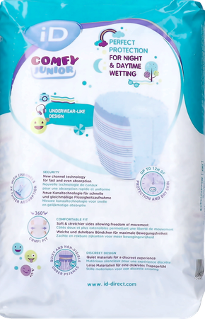 De iD Comfy Junior Pants zijn ontworpen zoals echt ondergoed met een superabsorberend vermogen. Ze kunnen gedragen worden door kinderen vanaf vier jaaren bieden een ideale oplossing overdag en 's nachts. Ze beschikken over een groot absorptievermogen en garanderen maximale discretie en comfort.