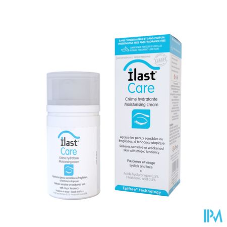 last Care® is een crème voor de verzorging en de verzachting van droge of beschadigde oogleden: droogheid, irritatie (atopie, blefaritis) of kwetsbaarheid (na een chirurgische ingreep). Ilast Care® draagt bij tot het verzachten van de irritatie en de droogheid van de huid. Ilast Care® is een medisch hulpmiddel dat bijdraagt tot de hydratatie en dat het herstel bevordert in het geval van beschadigde oogleden (letsel) of in het geval van vergevorderde droogheid van de huid. Dankzij de EpifreeTechnology® heeft Ilast Care® een zuivere formule, zonder bewaarmiddelen en sterk geconcentreerd aan hyaluronzuur en allantoïne, voor een maximale doeltreffendheid en veiligheid.