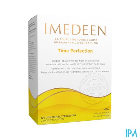 IMEDEEN Time Perfection™ huidverzorgingstabletten helpen de zichtbare tekenen van het ouder worden te bestrijden. Fijne lijntjes en rimpels worden na uw veertigste steeds zichtbaarder. IMEDEEN Time Perfection™ huidverzorgingstabletten werken in de diepere huidlaag, waar crèmes niet kunnen komen. Met het exclusieve Marine Complex™, LycoPhence GS Forte™, vitamine C en zink.