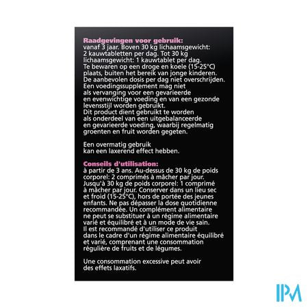 - 1 kauwtablet onder 30 kg lichaamsgewicht